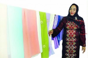 Tidak hanya motif, hiasan dan bahan dasar yang lebih variatif. Djahra juga membuat produk karawo lebih beragam, seperti taplak, tas, dasi, juga kopiah dan mukena.